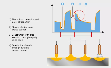 Nadzor varilnega toka (CBT – ˝Controlled Bridge Transfer˝) zagotavlja maksimalno zmanjšanje brizganja v uporabnem območju toka.